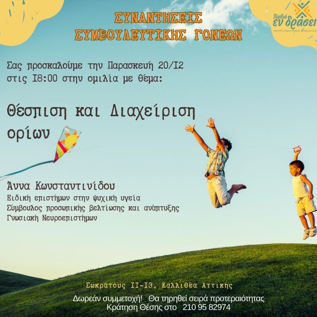 Θέμα της ομιλίας: “Θέσπιση και διαχείρηση ορίων.”